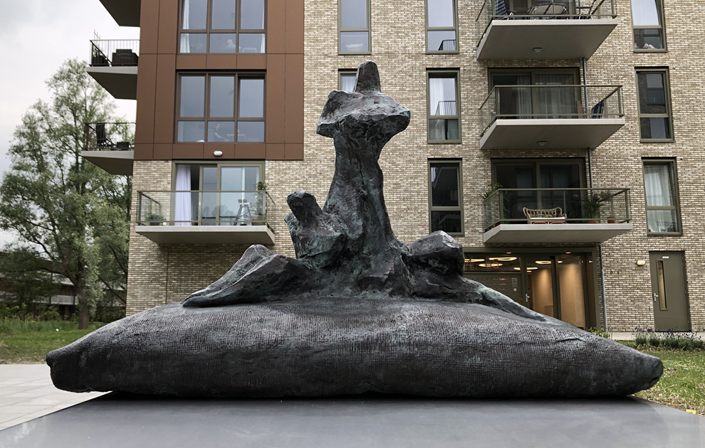 Het kunstwerk bestaat uit beton, rvs en een bronzen beeld. Aan het bronzen beeld heb ik een aantal maanden gewerkt. Hier zie je een overzicht van dat proces.